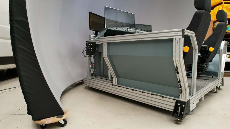 The monitors and dome screen have been used to demonstrate a working simulator and help visualise how the simulator might look with different sizes of monitors and a large wrap around dome display. Cobra Simulation specialise in visuals design, subject to contract bespoke visual system can be provided with the simulator.