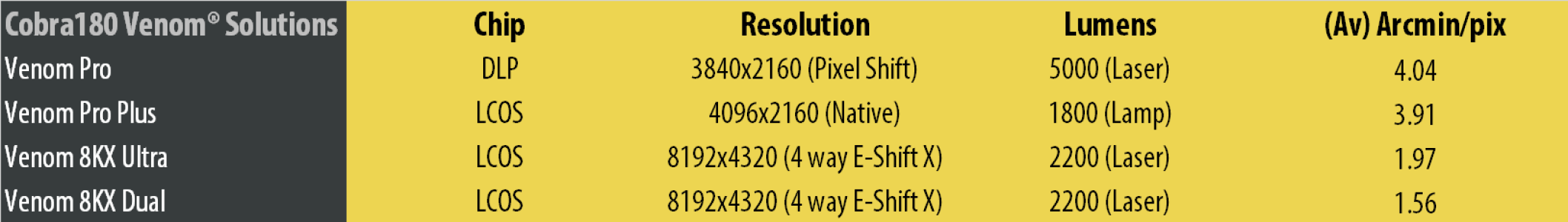 Below are examples of our Cobra180 Venom series resolution measurements. Most people would be unable to see individual pixels below 2.5 arcmins/pix.