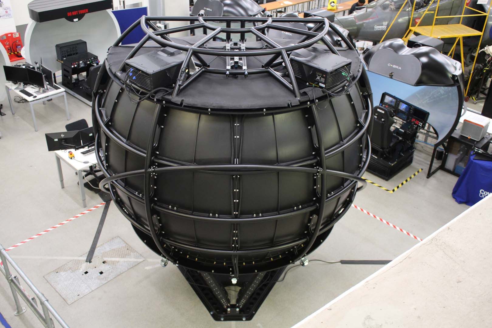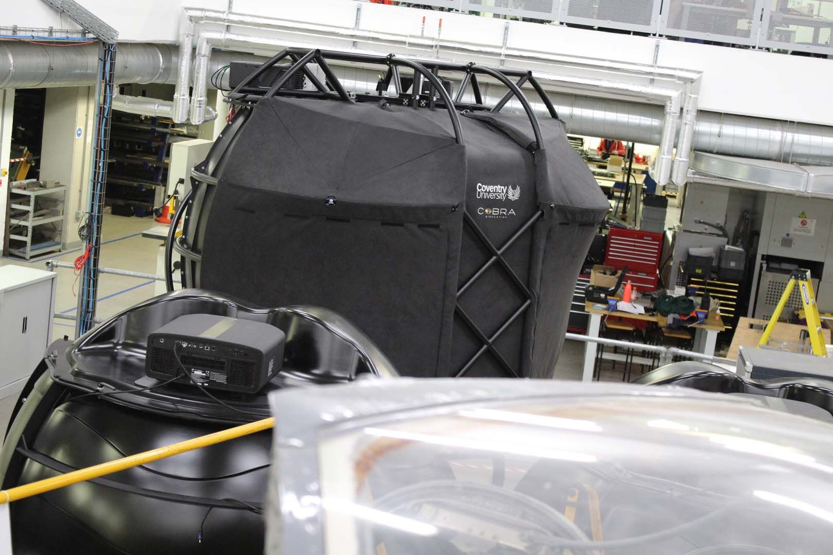 Where an immersive training dome environment is needed for more than one person, or a large simulation installation. A vehicle cockpit for example. Using the OmniFocus™ patented folded lens system, we offer maximum resolution on a large dome with the minimal number of projectors. This 3.2 metre dome is light weight and delivers a 180° horizontal field of view by +/- 40° vertical field of view. The Cobra320 Motion is certified for use on motion platforms and fully customisable. Speak to a member of our team for more information.